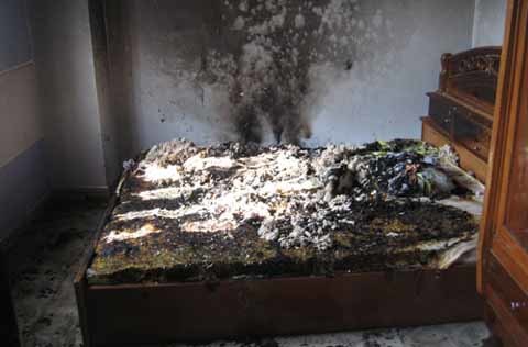 Chiếc giường nơi nhà báo Hoàng Hùng bị đốt cháy. (Ảnh: Người lao động) |