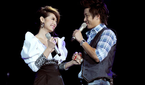 | Tuấn Hưng và Minh Hằng trên sân khấu |