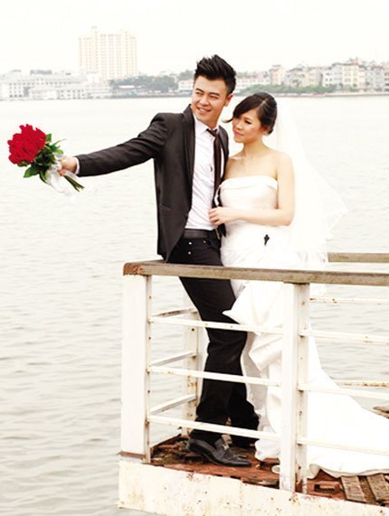 Vợ tôi là một người dũng cảm khi dám lấy tôi. Vì thế, khi lấy nhau tôi đã làm công tác tư tưởng cho cô ấy rất nhiều. Tôi bảo: "Nếu có lộ ảnh cưới trên báo, em nên chấp nhận vì khó tránh được chuyện đó khi anh là người của công chúng. Hoặc nếu sau này những thông tin về vợ chồng mình bị đưa lên báo, em phải bình tĩnh chấp nhận". Khi đọc những bài báo sau đám cưới, cả hai vợ chồng chỉ cười, không thấy nặng nề.