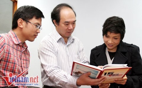 | Tổng biên tập Bùi Sỹ Hoa (giữa), Phó Tổng biên tập Phạm Anh Tuấn (trái) và ca sĩ Mỹ Linh |