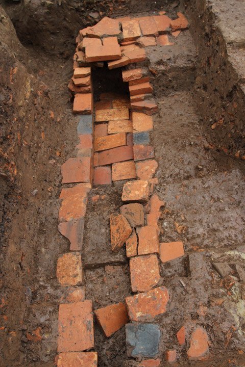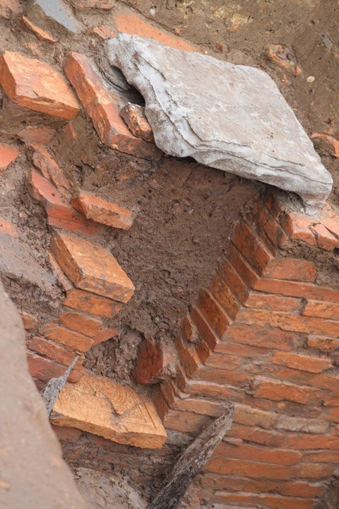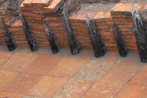 | Phần nền cống được ốp bằng gạch vuông, hai bên được xây bằng gạch bìa có cọc gỗ đóng chống lún. |