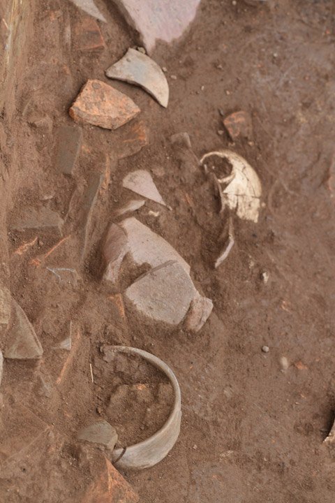 | Các tầng địa chất lộ nhiều di vật bằng sành, gốm. |