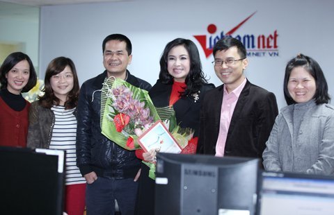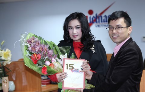 Ca sĩ Thanh Lam chụp ảnh với lãnh đạo, phóng viên VietNamNet, |