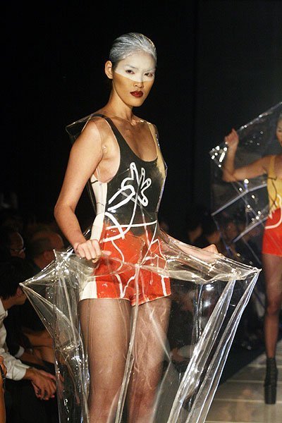 | Và để minh họa cho ý tưởng này, không chỉ mang lại sàn catwalk những bộ trang phục lạ mắt được làm từ nylon |