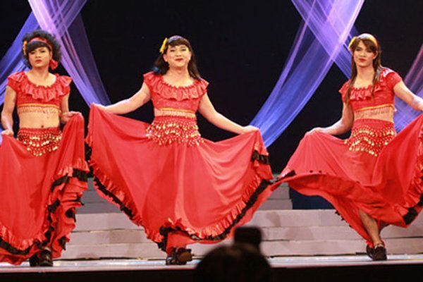 Tạo hình giả gái của Xuân Bắc trong 1 chương trình cùng Tự Long.