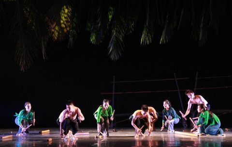 Những động tác múa vừa mềm mại vừa khỏe khoắn của các diễn viên trên nền âm thanh, tiếng đàn tranh réo rắt của nghệ sĩ Hải Phượng và những câu dân ca quen thuộc kết hợp với nhiều đạo cụ như cầu tre, gánh hàng, nón lá, thúng gạo, những hạt thóc vàng... tạo nên bức tranh làng quê bình dị mà đầy sức sống.