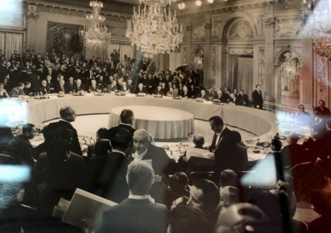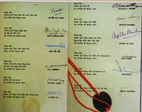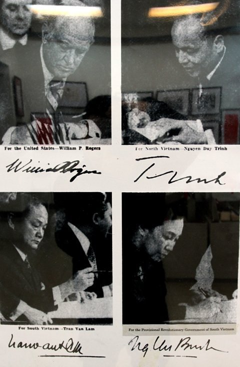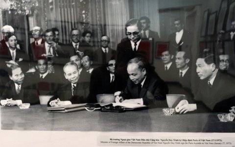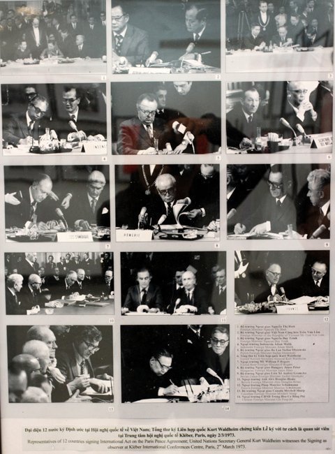 | Đại diện 4 bên (Việt Nam Dân chủ Cộng hòa; Chính phủ Cách mạng lâm thời miền Nam Việt Nam; Hoa Kỳ; Cộng hòa Việt Nam) ký hiệp định Paris (27/1/1973). |