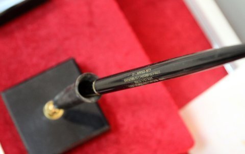 | Trên thân bút khắc rõ thông tin liên quan đến ngày ký kết Hiệp định Paris. |