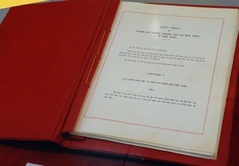 Điều đặc biệt của triển lãm này là ngoài những hiện vật và bức ảnh quý, lần đầu tiên văn bản gốc Hiệp định Paris 1973 được trưng bày sau đúng 40 năm diễn ra sự kiện lịch sử này.