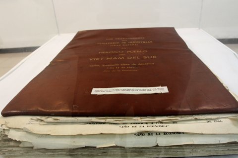 | Một cuốn sách cực lớn là tập hợp chữ ký của nhân dân Cu Ba ủng hộ nhân dân Việt Nam là một hiện vật quý và rất có giá trị. |