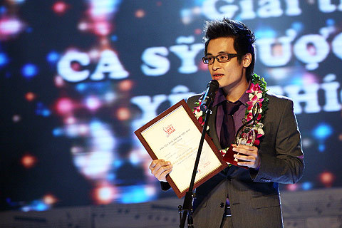 | Ca sĩ Hà Anh Tuấn với giải ca sĩ được khán giả yêu thích nhất |