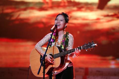| Mai Khôi trình bày ca khúc "Việt Nam" (Ảnh: Liêu Đông) |