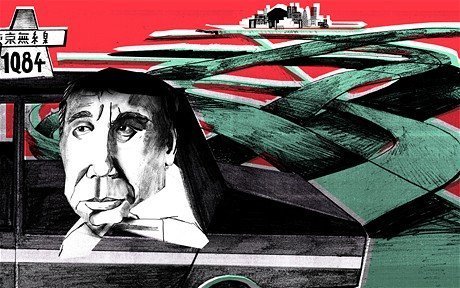 | Minh họa bài bình 1Q84 của Murakami trên tờ Telegraph |