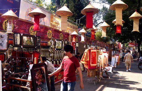 Hình ảnh phố ông đồ Tết 2013 trước cổng Cung văn hóa Lao Động.