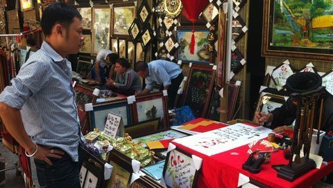 Hoạt động mua bán thư pháp tại một phố ông đồ năm 2013.