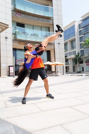 Trong sự kiện chạy bộ luyện sức bền, rèn sức bật đầu năm Quý Tỵ, rocker nổi tiếng tạo dáng “độc đáo” để chọc cười mọi người bên cô nàng rapper Suboi.