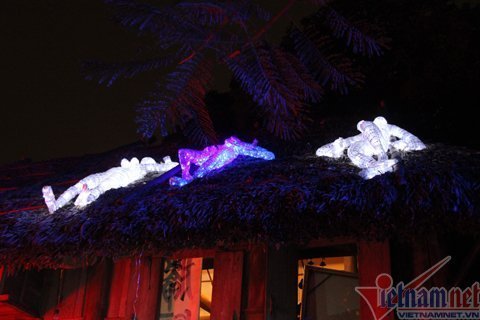 Trên nóc nhà họa sĩ Đào Anh Khánh có 3 hình nộm người phát sáng. |