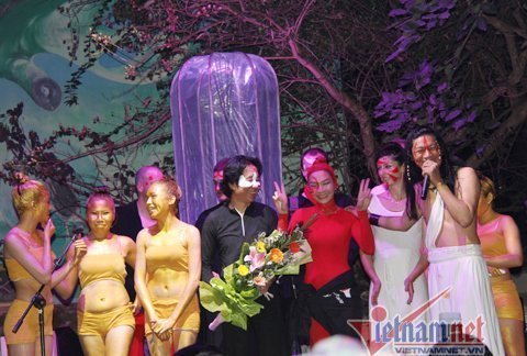 | Đào Anh Khánh và các nghệ sĩ diễn ở không gian "Mở" |