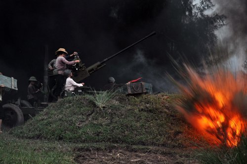 Làm phim chiến tranh với những cảnh khói lửa hoành tráng nhưng các đoàn làm phim dù có giấy phép sản xuất cũng vô cùng vất vả khi tìm mua chất nổ để phục vụ các cảnh quay.