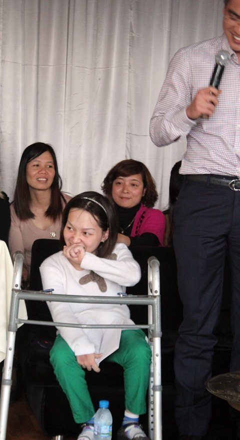 Cô đi qua đám đông cử tọa có lẽ đang ngạc nhiên, và được nhường chỗ ở hàng ghế đầu, bên cạnh BTV Quang Minh.
