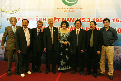 Những tên tuổi gạo cội của làng điện ảnh Việt chụp chung tấm hình lưu niệm.
