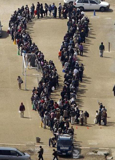 Nhưng ở nước Nhật, trong vùng ảnh hưởng của trận động đất và sóng thần vừa qua, tuyệt nhiên không có những hình ảnh bi đát. Giữa khung cảnh hỗn mang của đất trời và hoang mang của lòng người, hàng trăm người vẫn xếp hàng nhận thực phẩm, xăng đầu tiếp tế ít ỏi đang vơi dần, trong trật tự, là điều ngoài sức tưởng tượng.