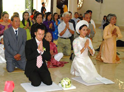 Hồng Ánh và Thanh Sơn tổ chức đám cưới nơi cửa Phật