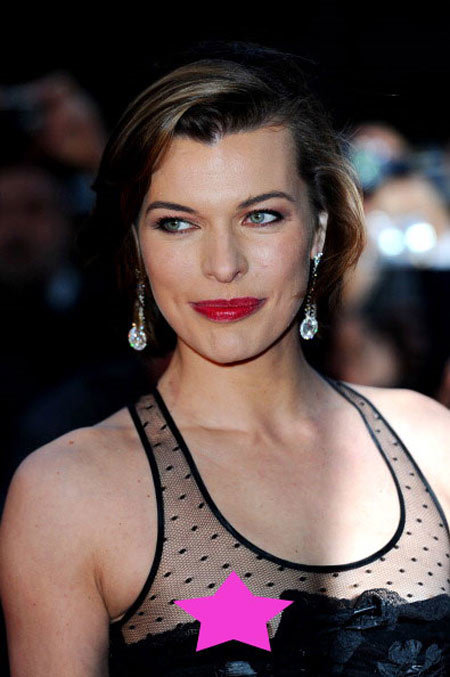 | Milla Jovovich trong lễ sinh nhật 80 tuổi của cựu tổng thống Nga Mikhail Gorbachev đã bị một phen ngượng mặt khi chiếc váy cô mặc bị trễ hở hết một bên nhũ hoa. |