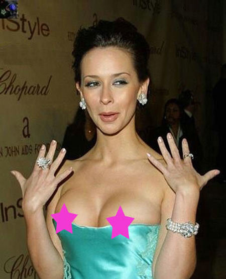 | Mải mê tạo dáng chụp ảnh Jennifer Love Hewitt không biết cả hai gò bồng đảo của mình đã lộ thiên từ lúc nào. |