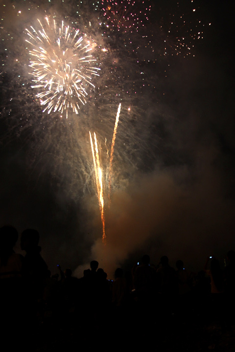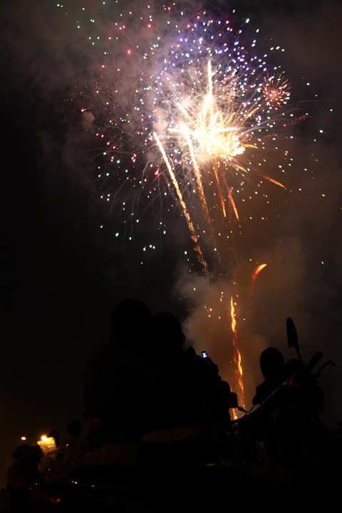 Mọi người bỗng cảm thấy gần nhau hơn trong những tràng pháo tay và tiếng ồ lên khi cả loạt pháo cùng nổ và sáng rực trên bầu trời. |