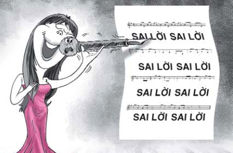 Ca sĩ Thanh Lam - Đức Tuấn từng thật sự phải cầm giấy hát ở chương trình "Bóng núi" hay như ca sĩ Hoàng Hải từng cầm giấy lên sân khấu ở sân chơi Bài hát Việt. Nhưng theo ý kiến của nhiều khán giả ở các diễn đàn yêu nhạc thì thà như thế còn hơn là "tát" vào mặt họ bằng cách nhồi nhét những câu chữ đôi khi rất... nhảm nhí vào bài hát.