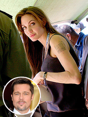 Tháng trước, hình xăm mới trên bắp tay trái của Jolie bị phát hiện. Nhiều người đoán già đoán non rằng đây là hình xăm bản đồ nơi sinh của bé tiếp theo Angie sắp nhận làm con nuôi. Tuy nhiên, nữ diễn viên 36 tuổi vừa xác nhận với People rằng cô xăm mình lần này là vì Brad Pitt. Chính xác hơn đó là bản đồ nơi sinh của "người hùng thành Troy": Shawnee, Oklahoma (Mỹ). Ngôi sao của phim "Salt" cũng cho hay không thể có khả năng cô nhận thêm con nuôi vào thời điểm này.