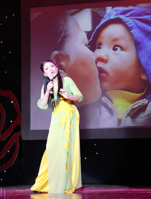 Tôn Thất Thái Sơn - con trai duy nhất của NSND Thanh Hoa - đã lên chức bố được mấy năm nay. Không chỉ song ca cùng mẹ mà nam ca sĩ này còn chứng tỏ sự trưởng thành trong giọng hát với phần hát solo riêng.