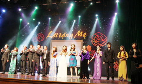 Gala "Quà tặng mẹ" do công ty của NSND Thanh Hoa tổ chức. Không chỉ nắm vai trò là người sản xuất, NSND Thanh Hoa còn khoe giọng hát không kém phần ngọt ngào ở cái tuổi xế chiều với ca khúc Huyền thoại mẹ (Trịnh Công Sơn).