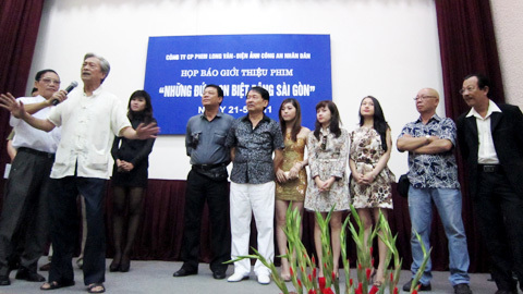 Đoàn làm phim ra mắt báo giới tại Hà Nội. Ảnh: Hoàng Vy