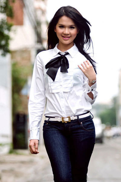 Cô cũng chụp một số ảnh trong trang phục áo dài