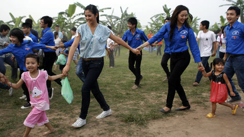 Hoa hậu Ngọc Hân và người đẹp Phan Thị Lý bên các em nhỏ