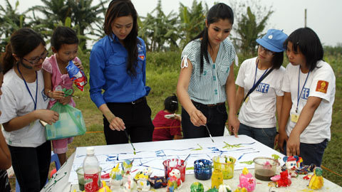 Cùng đi với Ngọc Hân là Phan Thị Lý, Top 5 Hoa hậu Thế giới người Việt. Món quà đến với các em tuy nhỏ, chỉ là truyện tranh, sách vở cũ và một ít bánh kẹo mà các bạn sinh viên đi quyên góp được nhưng lại mang ý nghĩa tinh thần rất lớn. Cuối buổi giao lưu, Ngọc Hân và Phan Thị Lý đã vẽ một bức tranh về cầu Long Biên tặng các em. Hai người đẹp cho biết, họ rất vui khi tham gia hoạt động cùng sinh viên tình nguyện, đặc biệt là đến với các em nhỏ gặp hoàn cảnh khó khăn.