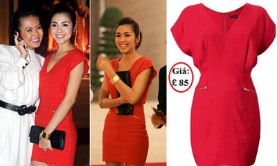 Chiếc váy đỏ quen thuộc đã nhiều lần được nhắc đến trong các vụ đụng hàng của sao Việt. Đây là chiếc váy của hãng thời trang nổi tiếng French Connection. Sản phẩm với thiết kế đơn giản, gọn gàng và thuận thiện cho người mặc này có giá 85 bảng Anh (tương đương 2,8 triệu đồng).