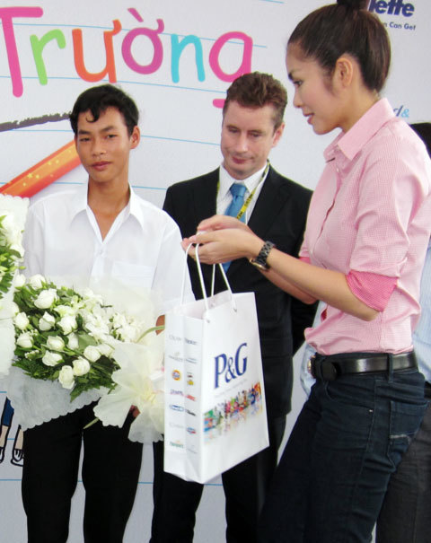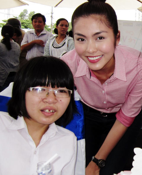 | Mai Phương Thúy tặng quà cho em Nguyễn Thị Huyền |