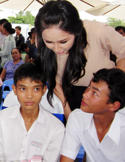 | Hoa hậu Việt Nam 2006 hỏi thăm hai em Hòa và Mạnh |