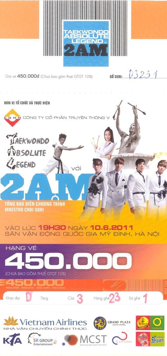 Để nhận vé tham dự chương trình The Tal với 2AM, mời độc giả gửi thư đăng ký tới địa chỉ email: ve2am.vnn@gmail.com. 30 độc giả may mắn sẽ được lựa chọn ngẫu nhiên và nhận được vé trực tiếp từ ban tổ chức tại địa chỉ: Trụ sở công ty V-COMM (Tầng 1, nhà NO3 Trần Quý Kiên, quận Cầu Giấy, Hà Nội).