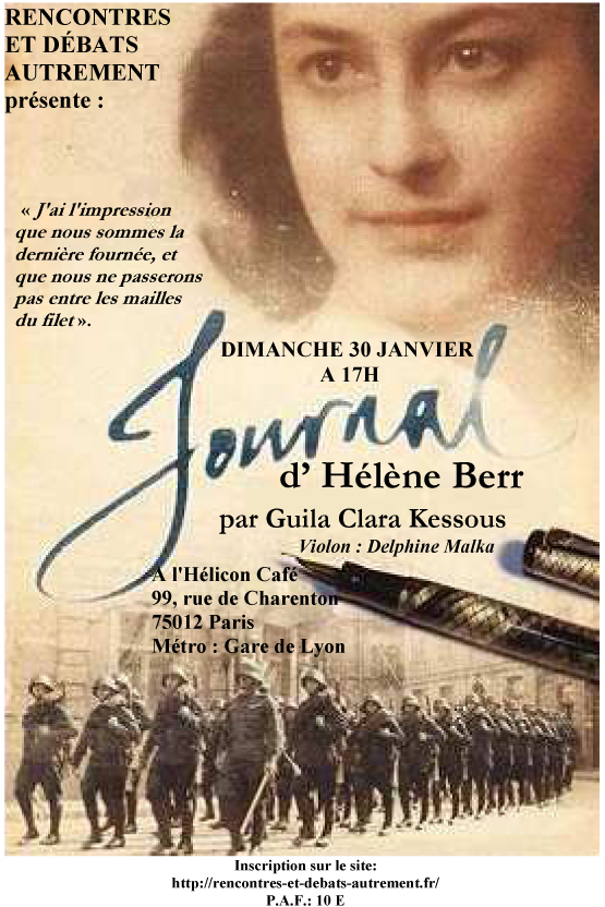 Cũng là một cuốn nhật kí của một cô gái về những đạo luật bài Do Thái thời kì chiếm đóng của Đức Quốc Xã thời Thế chiến thứ 2, nhưng khác Anna Frank, Nhật kí Hélène Berr là cái nhìn của một cô gái Pháp 22 tuổi, gốc Do Thái. Năm 1942, những đạo luật bài Do Thái làm chao đảo và nhấn chìm cuộc đời của Hélène Berr. Tháng 11/1942, chính sách bài Do Thái khiến Hélène Berr không tham dự được kỳ thi lấy bằng thạc sỹ chuyên nghành tiếng Anh. Ngày 8/3/1944, cô bị bắt và đưa về trại tị nạn Drancy, rồi lần lượt bị đưa đến trại tị nạn Auschwitz và Bergen-Belsen. Tại đây, ngày 10/4/1945, cô bị tra tấn cho đến chết chỉ vài ngày trước khi trại tị nạn được giải phóng.