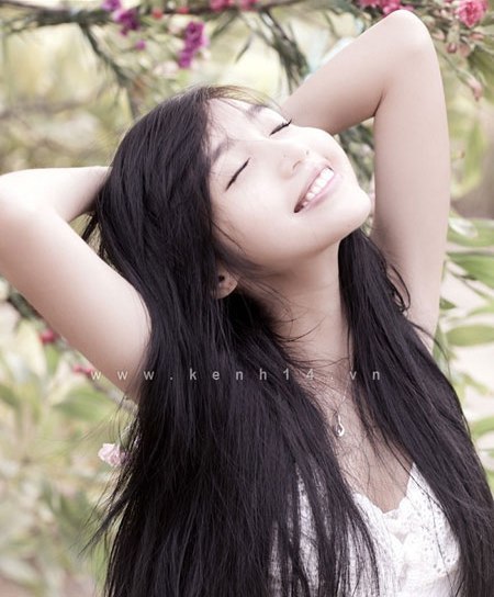 Váy trắng tóc xõa, Elly Trần thỏa sức vui tươi trong nắng. Dường như chưa bao giờ Elly thay đổi hình ảnh mái tóc dài đen nhánh thướt tha của mình.