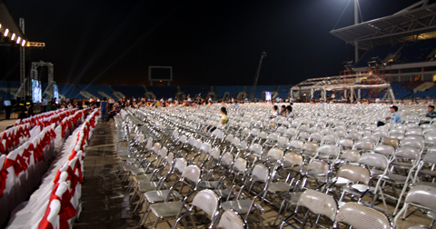 Ảnh chụp lúc 19h47 Dãy ghế VIP dưới mặt sân nơi có giá từ 1,5 tới 2,5 triệu đồng