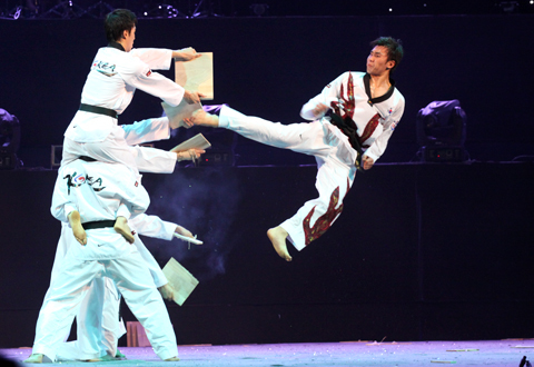 Teakwondo, một môn võ nổi tiếng khi nhắc đến Hàn Quốc đã có màn trình diễn ấn tượng với người xem.