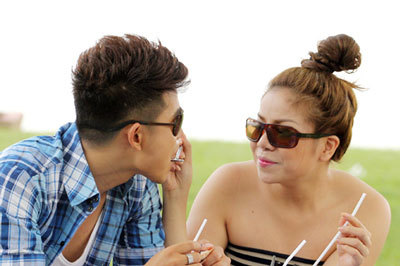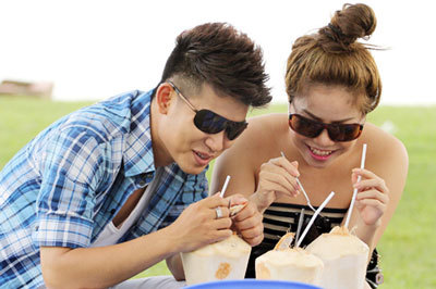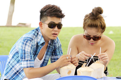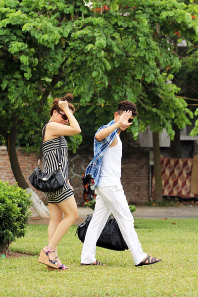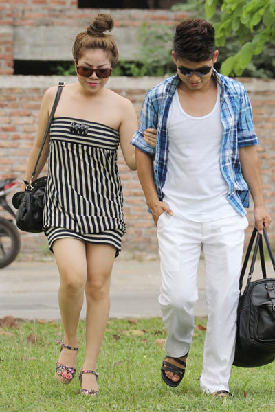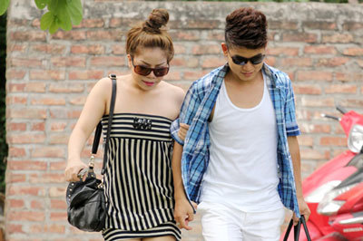 Minh Chuyên tay trong tay rất tình tứ cùng một anh chàng điển trai.