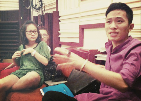 Bé Xíu chăm chú nghe "chú" Dương nói về cách nhả chữ.