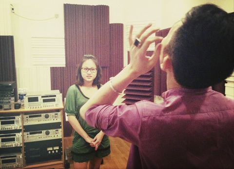 Trong khi cô em đang được chỉ dẫn dạy hát thì cô chị ngồi xem với tư cách khán giả