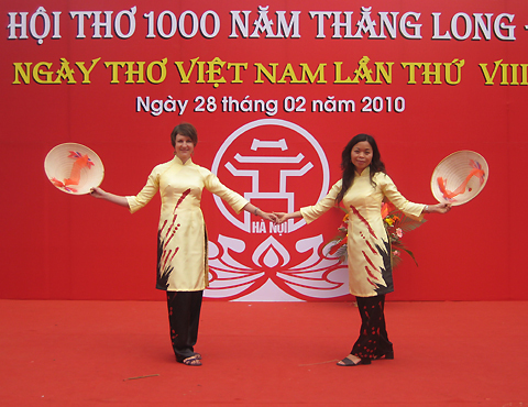 Nguyễn Phan Quế Mai trình diễn thơ cùng một nghệ sĩ nước ngoài trong ngày Thơ Việt Nam
